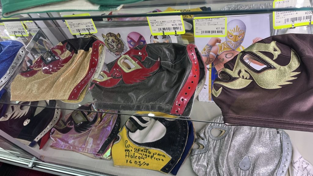 日本一のプロレスグッズ屋さんだけにマスクも沢山展示されていました。
